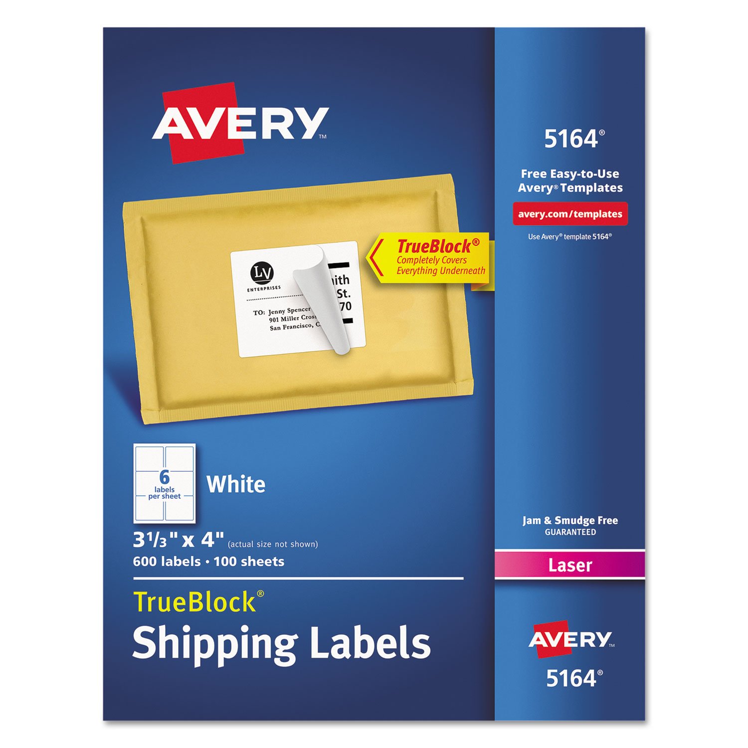 Avery Shipping Address Labels, Laser Printers, 690 Labels, 3-1/3x4 Labels, Permanent Adhesive, TrueBlock (5164)