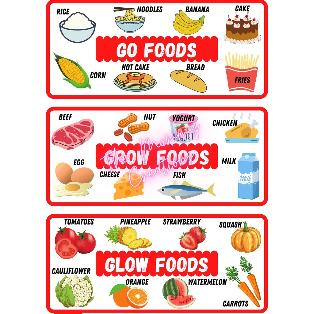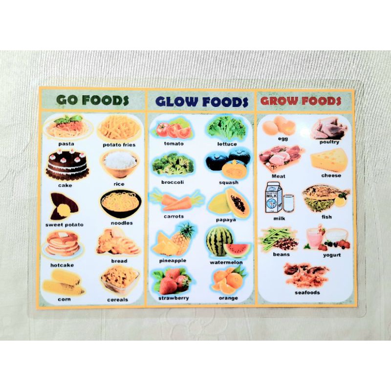 Go grow glow foods chart with labels